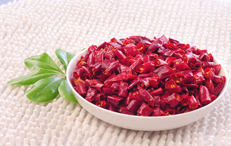 辣椒圈,為干辣椒制品系列,通俗的說法就是切成圓圈狀的干辣椒,此類辣椒在餐飲企業(yè)用得很多,一是因為已切成段,省去了再加工的環(huán)節(jié),節(jié)省時間與成本,二是因為干辣椒段在菜品中也起到了很好的裝飾作用。