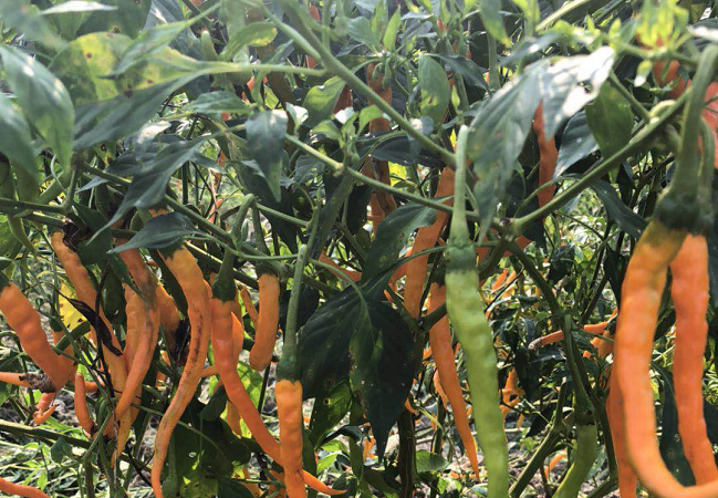 目前,匡貴斌“試水”的700畝黃貢椒取得豐收,匡老五辣業(yè)在耒陽有辣椒基地7個,種植農(nóng)戶35戶,涉及5個鄉(xiāng)鎮(zhèn)。6-9月是辣椒收獲的季節(jié),村民的房前屋后、屋頂山坡都曬滿了猶如“金條子”般的黃貢椒,更有村民笑說“辣椒曬不贏,屋頂變成坪”,曬辣椒已成為基地農(nóng)村一道獨有的風(fēng)景。