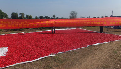 三、匡老五辣業(yè)根據(jù)各品種干辣椒的特性,如南方辣椒旱氣濕高,鮮椒水份大特點,烘烤至九成五干,再配以密封包裝(既保有了鮮亮的色澤,又保存有濃郁的辣椒香辣味,同時氣溫20℃以內(nèi)可以保存兩個月以上),北方基地以自然晾干為主,保留了產(chǎn)品的原汁原味,晾曬至保存條件的干度為宜,用透氣的包裝加以貯存。